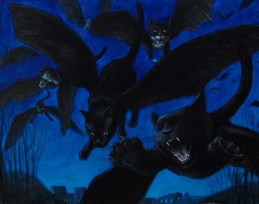 The sources of my imagery are hazy memories, half-forgotten dreams, dusty old books, and seldom seen black-and-white movies. Their ancestors are the poetry of Lautreamont, Baudelaire, and Poe and, of course, that snarling dog's head I may or may not have seen in the old widow's painting.